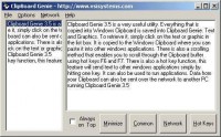 Clipboard Genie 4.1 is a very useful utility. Everything that is copied into Windows Clipboard is saved into Clipboard Genie. Text and Graphics. To retrieve it, simply click on the text or graphic in the list box. It is copied to the Windows Clipboard where you can paste it into other windows applications. There is also a scrolling method that enables you to scroll through the Clipboard buffer using hot keys F6 and F7. There is also a hot key function, this feature will send text to other windows applications simply by hitting one key. It can also be used to run applications. Data from your Clipboard can also be sent over the network to another PC running Clipboard Genie 4.1 Clipboard Manager