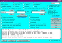 Easy Date Converter is a program to perform arithmetical operations with dates in various solar calendars, including the Gregorian and the ISO 8601 Week Calendar. It is a bilingual English/German program. Suppose you run an advertisement which expires 45 days from today. What date will that be? How many weekdays are there in 2006? If you have an investment which matures on June 30th, 2007, how many days away is that? When will be (or was) the 10,000th day in your life? How many years, months and days until December 21st, 2012? If you find this sort of calculation a tad difficult then this program will make it easy. Easy Date Converter provides five calendrical operations: 1. Calculation of the number of days from one date to another. 2. Addition of a number of days to a date and subtraction of a number of days from a date. 3. Addition of a number of months to a date and subtraction of a number of months from a date. 4. Interconversion among Gregorian (a.k.a. Common Era) dates, Julian Calendar dates, ISO 8601 Week Calendar dates,Hermetic Leap Week dates, ordinal dates in the form yyyy-ddd and Julian day numbers. 5. Display of a month in any year according to either the Common Era Calendar or the Julian Calendar, with additional display of corresponding ISO 8601 Calendar dates. Weekend days may be included or excluded in date calculations.