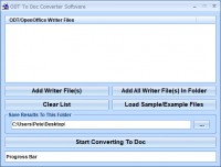 This software offers a solution to users who want to convert one or more OpenOffice Writer (ODT) files into MS Word (DOC) format. The user can specify the files or an entire folder to be included before starting the conversion.