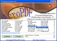 Adobe Photoshop SpeedUp significantly decreases the time it takes to load Adobe Photoshop by disabling the plug-ins that you may not need. There are several options such as whether to load the Adobe fonts, load the presets, and set the memory usage. You may restore to the original settings at any time. Adobe Photoshop SpeedUp is freeware, works with Adobe Photoshop versions 3 through CS5. Available interface languages: English, French, German, Spanish, Italian, Portuguese, and Japanese.
