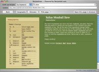Recipe4mac lets you navigate through thousands recipes from the Recipe4all.com database with a neat Mac interface. Visually resembling the Safari browser Recipe4mac allows you to search recipes by keywords, by ingredients or by geography. It also has direct access to the glossary. With a single click you can see the same recipe or listing in your default web browser.