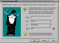 Unit Conversions 2000 is a small utility that will allow you to quickly convert units of measure from one system to another. Facilities are included to convert various Lengths, Weights, Volumes, Areas, Density, Power and Scale measurements.