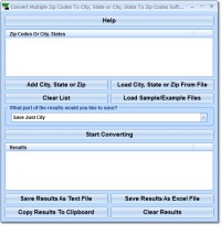Convert Multiple Zip Codes To City, State or City, State To Zip Codes Software