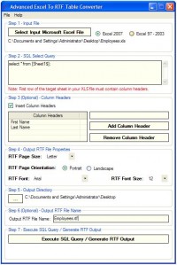 Converts Excel files to RTF table format.