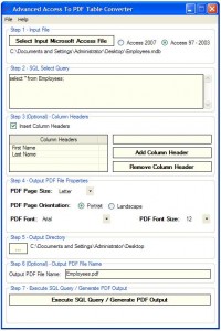 Creates PDF tables from Access files.
