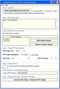Creates RTF tables from MS Access files.